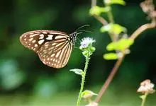 虎斑蝶,Danaus genutia ,是斑蝶属的一种,常见于湿地公园内。雄性虎斑蝶经常伏于吊裙草 上吸食汁液,以制造吸引异性的香气。虎斑蝶翅膀腹面鲜橙色,翅脉和翅边缘黑色,边缘上有两行小白点,…全部>>