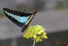 青带凤蝶Graphium sarpedon ,又名青凤蝶,是最普遍的中型凤蝶,飞行速度很快。青带凤蝶的翅膀中央有许多浅蓝色的斑点,很整齐地排列成一条直线。这些斑点由上而下逐渐变大,就像一条青色的带子。全部>>