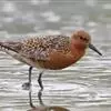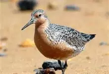 红腹滨鹬,是鹬科、滨鹬属的小型涉禽,体长23-25厘米,嘴较短而直、黑色,脚亦甚短、绿色。体较粗胖。夏季上体灰褐色具黑色中央纹,背具棕栗色和白色斑纹和羽缘,头侧和整个下体栗红色。冬季棕红色消失,…全部>>