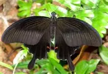 蓝凤蝶,Papilio protenor Cramer,凤蝶科凤蝶属的一种昆虫。翅展95~120mm。翅黑色,有靛蓝色天鹅绒光泽。雄蝶后翅正面前缘有黄白色斑纹,…全部>>