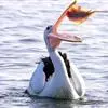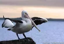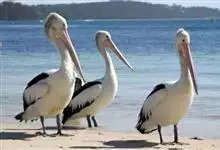 澳大利亚鹈鹕是一种大型涉禽,体重达13千克。生活于沿海及河川、湖泊等处。飞行力强而悠逸,常群飞群栖,极善于游泳,但不会潜水。游泳时张口捕鱼,将捕得的鱼兜入喉囊内。有时结群,排成长线,…全部>>