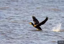 普通鸬鹚是属于鲣鸟目鸬鹚科鸬鹚属鸟类,又名水老鸦、鱼鹰、乌鬼、黑鱼郎等。体长720—900毫米,雌雄同型。通体黑色,有绿褐色金属光泽;喙厚重,喙基和喉囊橙黄色,脸颊及喉白色;夏羽颈及头饰具白色丝状羽,…全部>>