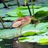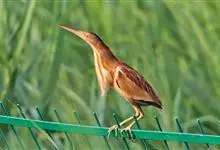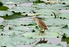 紫背苇鳽是鹭科、苇鳽属动物,为涉禽,体长约33厘米。头顶黑色,后头至尾上覆羽暗栗褐色;翅上覆羽橄榄黄色;下体浅棕黄色。多生活于水库和山脚边的稻田、芦苇丛、滩涂及沼泽草地,在西藏见于海拔2300米的农田,…全部>>