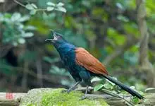 褐翅鸦鹃,是鹃形目鸦鹃科鸦鹃属的鸟类。褐翅鸦鹃的身体为黑色;头颈和胸带蓝紫色金属光泽并具黑亮的羽干纹,下胸至腹部泛金属绿光泽;两翼和肩部为棕栗色,外侧飞羽具暗色羽端,尾羽闪铜绿色光泽;虹膜赤红色,…全部>>