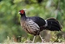 黑鹇是鸡形目雉科目鹇属鸟类,又称鸬雉、黑鸡。体型中等。雄鸟上体黑褐色,背羽具黑紫色金属光泽;头顶具黑羽冠;脸部裸皮呈红色,散生稀疏黑色纤羽;尾长而侧扁,中央两对尾羽红褐色,…全部>>