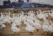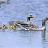 灰雁:体长70-90厘米,翼展147-182厘米,体重2.5-4千克,寿命17年。体大而肥胖。嘴、脚肉色,上体灰褐色,下体污白色,飞行时双翼拍打用力,振翅频率高。脖子较长。腿位于身体的中心支点,…全部>>