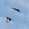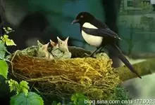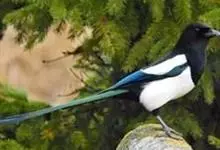 喜鹊:是鸦科、鹊属的一种鸟类。共有11个亚种。体长40-50厘米,雌雄羽色相似,头、颈、背至尾均为黑色,并自前往后分别呈现紫色、绿蓝色、绿色等光泽,双翅黑色而在翼肩有一大形白斑,尾远较翅长,呈楔形,…全部>>