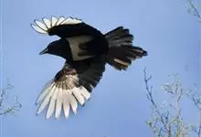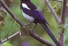 喜鹊:是鸦科、鹊属的一种鸟类。共有11个亚种。体长40-50厘米,雌雄羽色相似,头、颈、背至尾均为黑色,并自前往后分别呈现紫色、绿蓝色、绿色等光泽,双翅黑色而在翼肩有一大形白斑,尾远较翅长,呈楔形,…全部>>