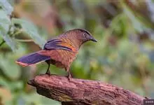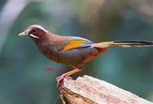 蓝翅噪鹛:噪鹛科、彩翼噪鹛属动物。中型鸟类,体长22-25厘米。上体棕橄榄褐色密被黑色鳞状斑,眼蓝白色,眼上有一长而宽阔的黑色眉纹,从眼先直到颈侧。下体棕褐色被黑色鳞状斑;尾上和尾上覆羽栗色,…全部>>