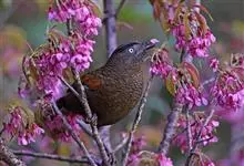 黑顶噪鹛:中型鸟类,体长24-26厘米。前额、脸、颏、喉黑色,头顶黑褐沾棕或深棕橄榄褐色,背栗褐或棕褐色,颧斑白色或棕红色,眼后缘和颈侧亦具白斑,飞羽金黄橄榄色而具蓝灰色尖端。下体淡棕褐色。…全部>>