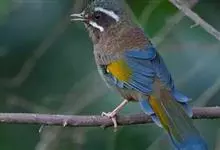 白颊噪鹛是雀形目噪鹛科噪鹛属鸟类,又称土画眉、小画眉、小噪鹃。成鸟额至头顶栗褐色,长眉纹、眼先和颊纹棕白色,眼后至耳羽深褐色,…全部>>
