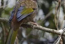 玉山噪鹛中等体型的褐色鸟类。白色长眉纹及髭纹显著;顶冠灰而具白色的鳞状斑纹;脸侧及颏褐色,喉及颈背褐色并具灰色羽缘而成的鳞状纹。腹部灰,臀栗色。两翼及尾青石蓝灰,外侧羽羽缘黄褐,初级飞羽羽缘黄褐。…全部>>