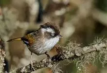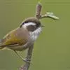 金胸雀鹛是莺科、雀鹛属小型鸟类,体长10-11厘米。头黑色,头顶中央有一道白色中央冠纹,颊和耳羽亦为白色,在黑色的头部极为醒目。上体深灰沾绿。两翅黑色,外侧飞羽有黄色外缘和白色端斑;尾凸状、黑色。…全部>>