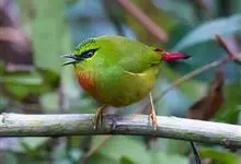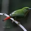 火尾绿鹛是莺科、绿鹛属小型鸟类,体长11-14厘米。上体绿色,头顶至枕具黑色鳞状斑,眼先和眼后黑色,眉纹黄绿色。两翅黑色具黄色和红色翅斑及白色端斑,极为醒目。中央一对尾羽绿色,外侧尾羽鲜红色。…全部>>