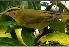 极北柳莺:体长11-13厘米,体小偏灰橄榄色,具明显的黄白色长眉纹,眼先及过眼纹近黑。上体概呈灰橄榄绿色;具甚浅的白色翼斑,大覆羽先端黄白色,形成一道翅上翼斑;中覆羽羽尖成第二道模糊的翼斑;下体白色…全部>>