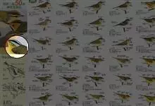 极北柳莺:体长11-13厘米,体小偏灰橄榄色,具明显的黄白色长眉纹,眼先及过眼纹近黑。上体概呈灰橄榄绿色;具甚浅的白色翼斑,大覆羽先端黄白色,形成一道翅上翼斑;中覆羽羽尖成第二道模糊的翼斑;下体白色…全部>>