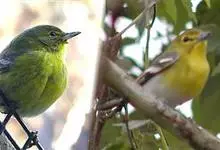 林柳莺:体长约11厘米,是一种体型小的黄绿色柳莺。两性相似。上体除两翅和尾羽暗褐色外,余均呈黄绿色;眉纹自嘴基伸向颈后,呈黄色;贯眼纹短,呈暗褐色;脸颊、颏、喉、胸呈黄色,但胸部色淡,腹部为丝光白色。…全部>>