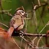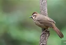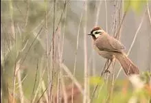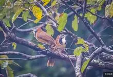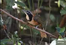 白颊噪鹛是雀形目噪鹛科噪鹛属鸟类,又称土画眉、小画眉、小噪鹃。成鸟额至头顶栗褐色,长眉纹、眼先和颊纹棕白色,眼后至耳羽深褐色,…全部>>