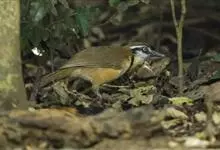 白颊噪鹛是雀形目噪鹛科噪鹛属鸟类,又称土画眉、小画眉、小噪鹃。成鸟额至头顶栗褐色,长眉纹、眼先和颊纹棕白色,眼后至耳羽深褐色,…全部>>