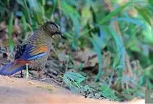 蓝翅噪鹛:噪鹛科、彩翼噪鹛属动物。中型鸟类,体长22-25厘米。上体棕橄榄褐色密被黑色鳞状斑,眼蓝白色,眼上有一长而宽阔的黑色眉纹,从眼先直到颈侧。下体棕褐色被黑色鳞状斑;尾上和尾上覆羽栗色,…全部>>
