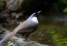 黑喉噪鹛是噪鹛属鸟类。体长24-29厘米,体重75-90克。雄鸟前额、眼先、眼周和眼后纹以及颊、须和喉黑色;黑色前额和蓝灰色头顶之间有道白色细斑;颈侧具椭圆形白斑,…全部>>