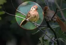 白颊噪鹛是雀形目噪鹛科噪鹛属鸟类,又称土画眉、小画眉、小噪鹃。成鸟额至头顶栗褐色,长眉纹、眼先和颊纹棕白色,眼后至耳羽深褐色,…全部>>
