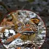 大噪鹛:中型鸟类,体长32-36厘米。额至头顶黑褐色,背栗褐色满杂以白色斑点,斑点前缘或四周还围有黑色。初级覆羽、大覆羽和初级飞羽具白色端斑。尾特长,均具黑色亚端斑和白色端斑。颏、喉棕褐色,…全部>>