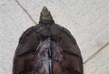 黑颈乌龟是龟鳖目淡水龟科乌龟属爬行动物;别名广东乌龟、广东草龟、黑点龟、黑颈水龟。黑颈乌龟体形较大,头较大,吻钝,略突出于上喙。头顶部黑色,侧面有黄绿色条纹;背甲黑色或棕褐色;中央有一条明显的脊棱,…全部>>