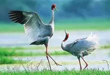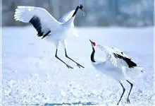 丹顶鹤:是鹤科、鹤属的一种大型涉禽,体长120-160厘米。颈、脚较长,通体大多白色,头顶鲜红色,喉和颈黑色,耳至头枕白色,脚黑色,站立时颈、尾部飞羽和脚黑色,头顶红色,…全部>>