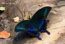 蓝凤蝶,Papilio protenor Cramer,凤蝶科凤蝶属的一种昆虫。翅展95~120mm。翅黑色,有靛蓝色天鹅绒光泽。雄蝶后翅正面前缘有黄白色斑纹,…全部>>