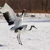 丹顶鹤:是鹤科、鹤属的一种大型涉禽,体长120-160厘米。颈、脚较长,通体大多白色,头顶鲜红色,喉和颈黑色,耳至头枕白色,脚黑色,站立时颈、尾部飞羽和脚黑色,头顶红色,…全部>>