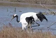 赤颈鹤是大型涉禽,共分化为3个亚种。后趾小而高位,不能与前三趾对握,因此不能栖息在树上;全身羽毛大致呈浅灰色,成鸟颈部裸露红色的皮肤。初级飞羽和初级覆羽为黑色,白色而修长的内侧飞羽垂直的覆盖着尾部。…全部>>