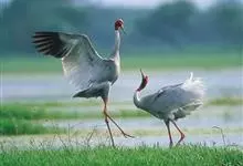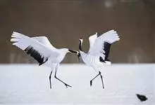 丹顶鹤:是鹤科、鹤属的一种大型涉禽,体长120-160厘米。颈、脚较长,通体大多白色,头顶鲜红色,喉和颈黑色,耳至头枕白色,脚黑色,站立时颈、尾部飞羽和脚黑色,头顶红色,…全部>>