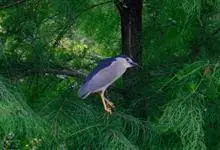夜鹭是中型涉禽,体长46-60厘米。体较粗胖,颈较短;嘴尖细,微向下曲,黑色;胫裸出部分较少,脚和趾黄色;头顶至背黑绿色而具金属光泽;上体余部灰色;下体白色;枕部披有2-3枚长带状白色饰羽,下垂至背上,…全部>>