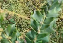 阿里山十大功劳是属于小檗科十大功劳属的一种植物。叶长圆状椭圆形,上面暗绿色,背面淡黄绿色,叶脉微显或不显,总状花序有时分枝,苞片卵形,外萼片卵形至近圆形,内萼片椭圆形至长圆形,浆果卵形,花期8-11月,…全部>>