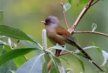 栗额斑翅鹛是噪眉科、斑翅鹛属中型鸟类,体长20-23厘米。头顶具浓密的羽冠,前额栗棕色,头顶灰褐色。上体棕褐色,两翅棕褐色具黑色横斑,翅基外缘有一黑斑,尾呈凸状,棕褐色具黑色横斑。下体棕褐色,…全部>>