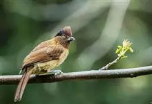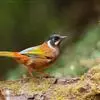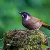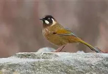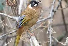 黑顶噪鹛:中型鸟类,体长24-26厘米。前额、脸、颏、喉黑色,头顶黑褐沾棕或深棕橄榄褐色,背栗褐或棕褐色,颧斑白色或棕红色,眼后缘和颈侧亦具白斑,飞羽金黄橄榄色而具蓝灰色尖端。下体淡棕褐色。…全部>>