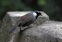 黑喉噪鹛是噪鹛属鸟类。体长24-29厘米,体重75-90克。雄鸟前额、眼先、眼周和眼后纹以及颊、须和喉黑色;黑色前额和蓝灰色头顶之间有道白色细斑;颈侧具椭圆形白斑,…全部>>