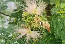 合欢,又名马缨花、绒花树、夜合合等,为豆科合欢属的一种落叶乔木。合欢的树高可达16米,人工特别养护的可达30米,树冠开展;二回羽状复叶,…全部>>