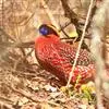 血雉雉科血雉属鸟类,别名血鸡、松花鸡,血雉的雄鸟大覆羽、尾下覆羽、尾上覆羽、脚、头侧、腊膜为红色,故称血雉。其别名甚多,各地皆异。在甘肃,因其胸侧和翅上覆羽沾绿,被称为“绿鸡”;因其羽毛形似柳叶,…全部>>