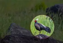 红腹角雉属于鸡形目雉科,雄鸟体羽及两翅主要为深栗红色,满布具黑缘的灰色眼状斑,下体灰斑大而色浅。雌鸟上体灰褐色,下体淡黄色,杂以黑、棕、白斑。全部>>