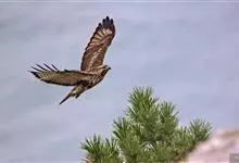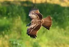 黑鸢:是鹰科、鸢属的一种中型猛禽,共有5个亚种。体长54-69厘米。上体暗褐色,下体棕褐色,均具黑褐色羽干纹,尾较长,呈叉状,具宽度相等的黑色和褐色相间排列的横斑;飞翔时翼下左右各有一块大的白斑。…全部>>