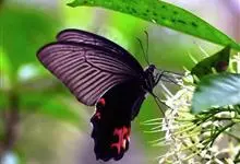 蓝凤蝶,Papilio protenor Cramer,凤蝶科凤蝶属的一种昆虫。翅展95~120mm。翅黑色,有靛蓝色天鹅绒光泽。雄蝶后翅正面前缘有黄白色斑纹,…全部>>