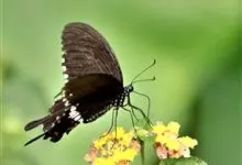 玉带凤蝶是鳞翅目凤蝶科凤蝶属昆虫,又称白带凤蝶、黑凤蝶、缟凤蝶、梁山伯凤蝶。雄蝶前翅外缘、后翅中央有7个大型黄白斑,排列成带。老熟幼虫深绿色,头部黄褐色,后胸前缘有1条齿状的黑色线状横纹,…全部>>
