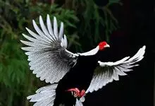 白鹇,是鸡形目雉科鹇属的一种留鸟。雄鸟上体白色并具黑色纹,下体黑色,头顶具黑色长羽冠,尾白而长;雌鸟体型较小,以橄榄褐色为主,下体具白色或皮黄色细纹;虹膜褐色,眼周具红色裸皮,喙黄色,脚鲜红色。…全部>>
