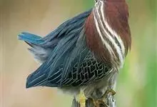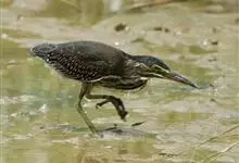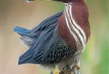 绿鹭:是鹳形目鹭科绿鹭属鸟类。体型小,头顶黑,枕冠亦黑色,上体蝉灰绿色,下体两侧银灰色;前额至后枕及冠羽墨绿色,眼后有一白斑,颊纹黑色;颚纹白色,后颈、颈侧和体侧烟灰色;背部披灰绿色矛状长羽,…全部>>