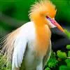 牛背鹭:体较肥胖,喙和颈较短粗。夏羽大都白色;头和颈橙黄色,前颈基部和背中央具羽枝分散成发状的橙黄色长形饰羽;前颈饰羽长达胸部,背部饰羽向后长达尾部,尾和其余体羽白色。冬羽通体全白色,个别头顶缀有黄色,…全部>>
