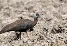 黑鹮:是鹳形目鹮科动物。体长600-680毫米,是一种大型涉禽。特征为头裸出,皮肤黑;体羽几乎全为深褐色,内侧小覆羽白,肩部具白色斑块,腿红色,颈背具浅蓝色斑块。通体体羽深褐,…全部>>