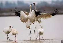 丹顶鹤:是鹤科、鹤属的一种大型涉禽,体长120-160厘米。颈、脚较长,通体大多白色,头顶鲜红色,喉和颈黑色,耳至头枕白色,脚黑色,站立时颈、尾部飞羽和脚黑色,头顶红色,…全部>>