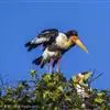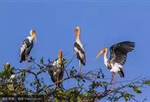 彩鹳:鹳科、鹮鹳属的鸟类。体长93-102厘米,体重2-3.5千克。橙黄色的嘴粗而长,但嘴尖稍微向下弯曲。脚为红色,也特别长,胫的下部裸出。橙色的头部赤裸无羽,繁殖期变为红色。体羽主要为黑色和白色,…全部>>